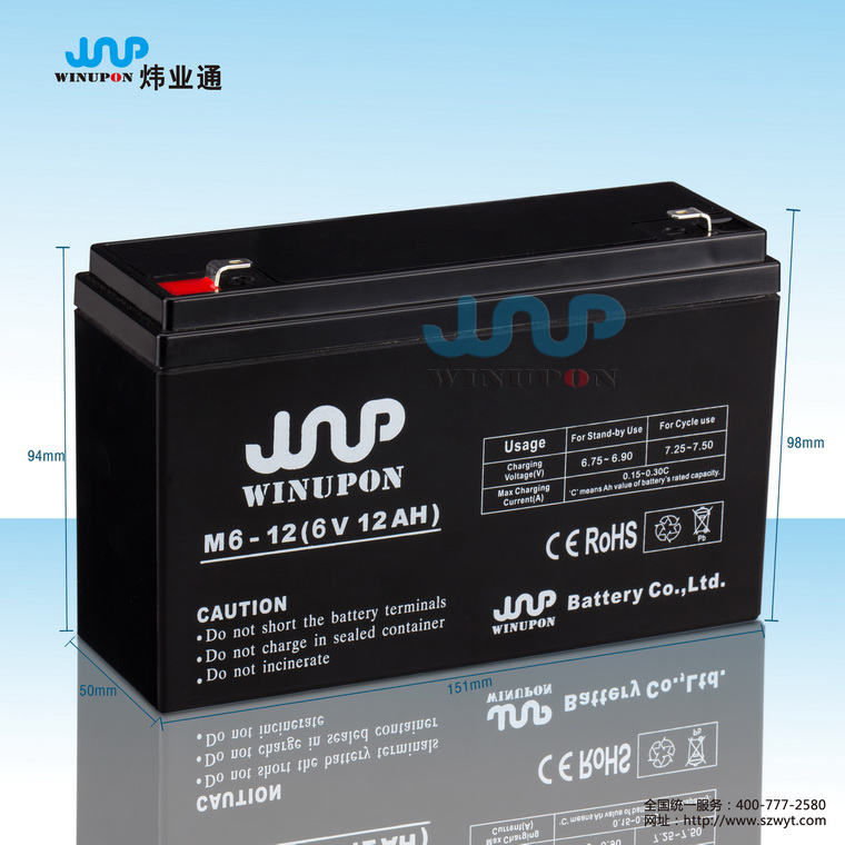規格型號 6V12AH 外形尺寸(±2mm) 約重1.60KG