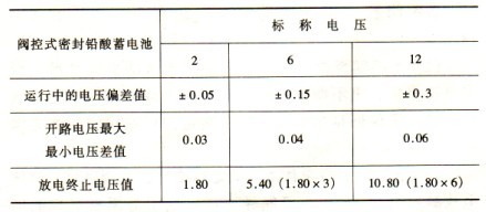 (1)閥控電池在運行中每只單體電池電壓偏差值及放電終止電壓值應(yīng)符合表3-2的規(guī)定;表3-2 閥控蓄電池在運行中電壓偏差值及放電終止電壓值的規(guī)定 單位:V