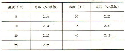 (3)注意檢查各單體電池問溫度變化,個別電池與整體電池溫差超過3℃,有可能導(dǎo)致該電池所需浮充電流的增大,所以設(shè)備環(huán)境溫度非常重要,最佳運行溫度為25℃,一般保證工作環(huán)境溫度在20~25℃之間。達不到者應(yīng)采用空調(diào)補助措施,或進行溫度補償。因為環(huán)境溫度低于25℃時,電池容量減少,壽命延長,環(huán)境溫度高于25℃時,電池容量增加而壽命縮短。電池避免安放在太陽直曬或溫差較大的環(huán)境中。以25 cC為準,環(huán)境溫度每升高l℃時,浮充電壓降低0.003V/單體;環(huán)境溫度每降低1 cC時,浮充電壓升高0.003v/單體;如果環(huán)境溫度變化超過l0℃,而沒有修正浮充電壓,將可能導(dǎo)致電池損壞。溫度補償參數(shù)見表3-3。